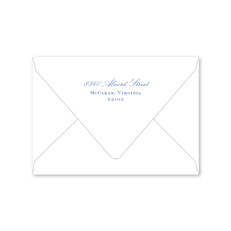 Enter your order quantity and check your total. Please enter your address EXACTLY like you want it printed on your envelope in the "Note" box below. Click Add to Cart. You will not receive a proof during the holidays (September 15 – December 31), unless your accompanying card requires a proof. If you do not include your address in the "Note" box or email it to Customer Service within 24 hours of placing your order, we will use your shipping address as the printed return address on your envelope.