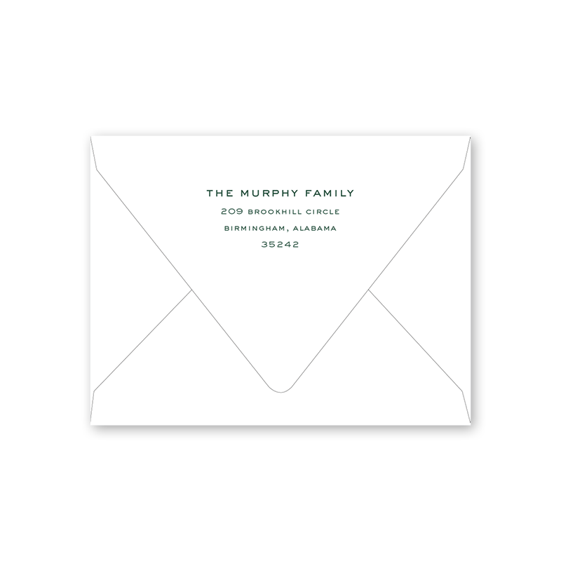 Enter your order quantity and check your total. Please enter your address EXACTLY like you want it printed on your envelope in the "Note" box below. Click Add to Cart. You will not receive a proof during the holidays (September 15 – December 31), unless your accompanying card requires a proof. If you do not include your address in the "Note" box or email it to Customer Service within 24 hours of placing your order, we will use your shipping address as the printed return address on your envelope.