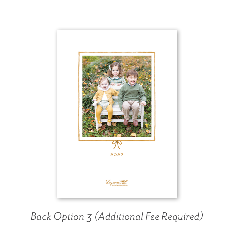 Select your order quantity from the dropdown menu below and check your total. Then click the Customize and Add to Cart button to create your card and add it to your cart.Want to add up to 4 photos on the back or inside of your card? Click here to add the fee to your cart.