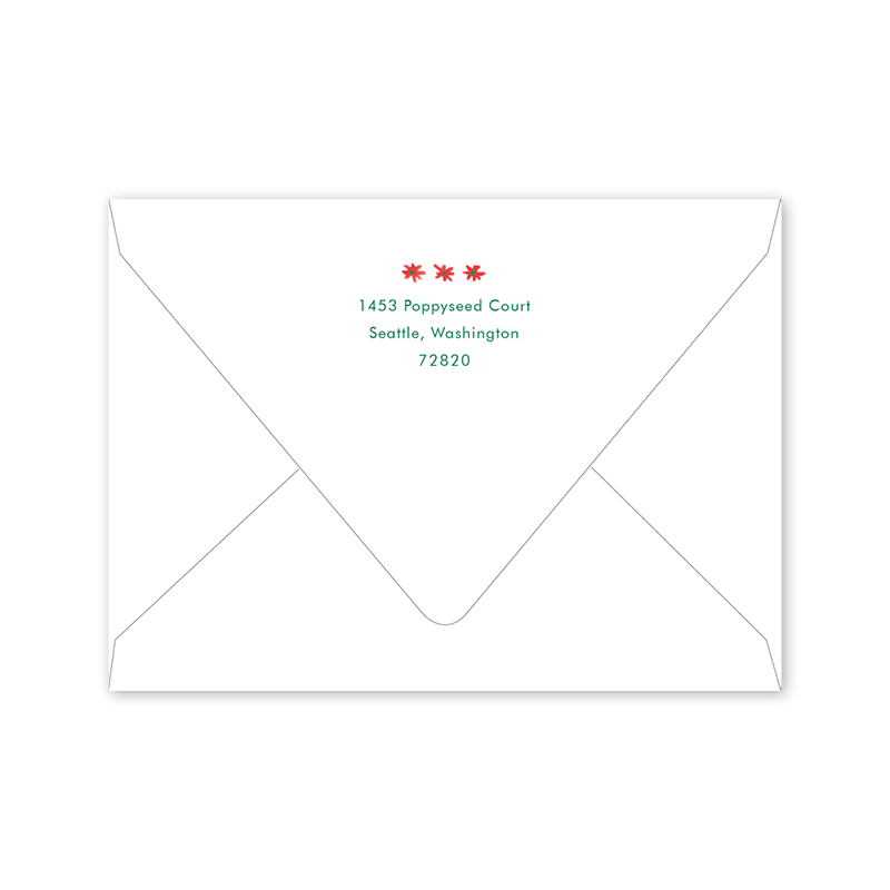 Enter your order quantity and check your total. Please enter your address EXACTLY like you want it printed on your envelope in the "Note" box below. Click Add to Cart. You will not receive a proof during the holidays (September 15 – December 31), unless your accompanying card requires a proof. If you do not include your address in the "Note" box or email it to Customer Service within 24 hours of placing your order, we will use your shipping address as the printed return address on your envelope.