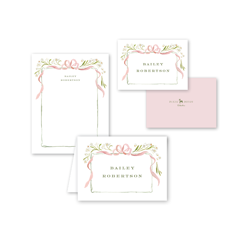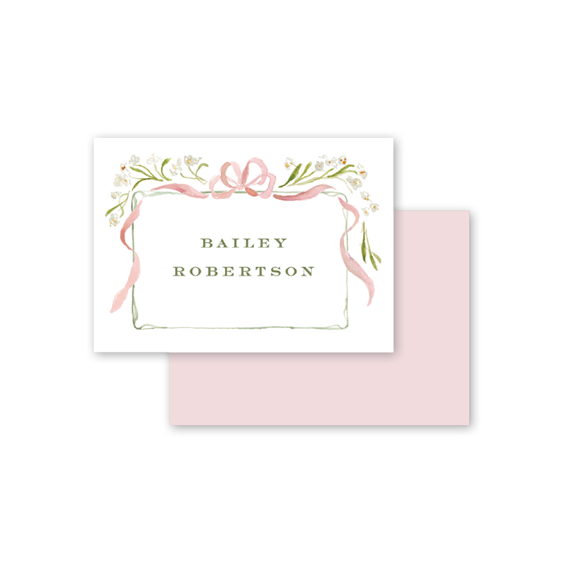 25 personalized notecards sized 3.5 x 4.875 inches folded on 120 lb Mohawk Eggshell White Paper