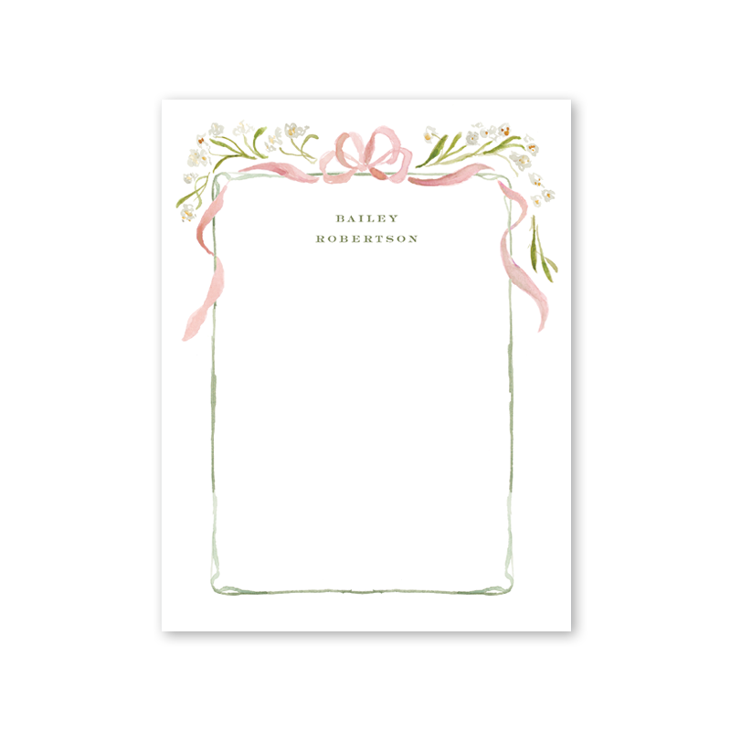 75 sheet personalized notepad sized 4.25 x 5.5 inches on 100 lb Mohawk Eggshell White Paper