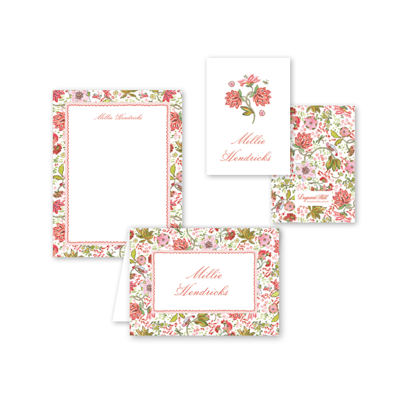 25 personalized notecards sized 3.5 x 4.875 inches folded on 120 lb Mohawk Eggshell White Paper