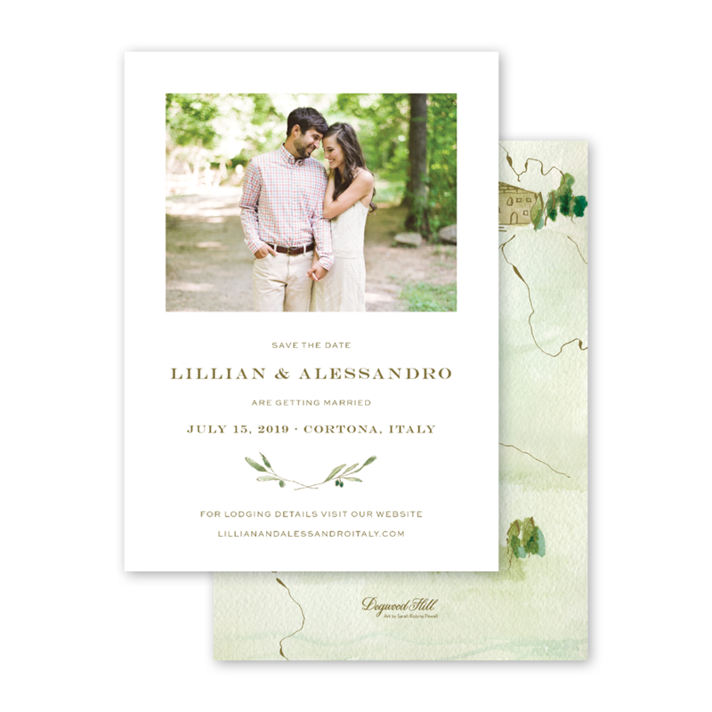 Select your order quantity from the dropdown menu below and check your total. Enter the text for your Save the Date in the “Note” box below. Click Add to Cart. Your wording does not have to match the sample product wording and can be customized for your Save the Date. You will receive a proof notification via email and text message within 3 to 5 business days.If your Save the Date includes a photo, please email a high resolution image along with your order number to weddings@dogwood-hill.com.