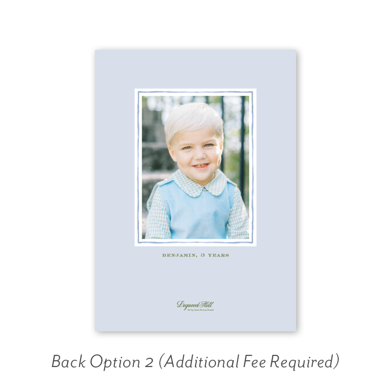 Select your order quantity from the dropdown menu below and check your total. Then click the Customize and Add to Cart button to create your card and add it to your cart.Want to add up to 4 photos on the back or inside of your card? Click here to add the fee to your cart.