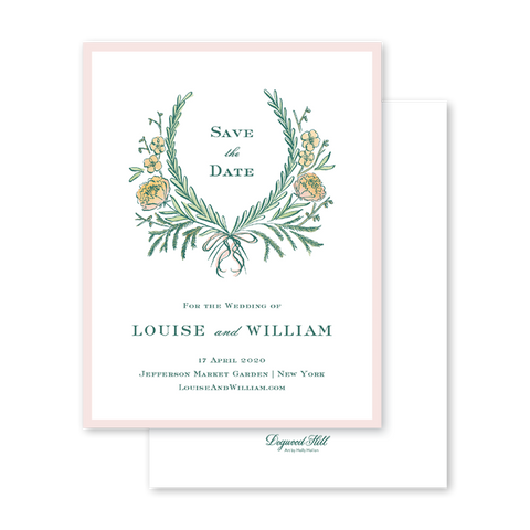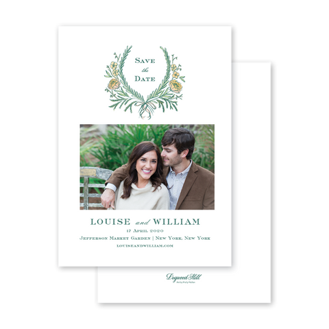 Select your order quantity from the dropdown menu below and check your total. Enter the text for your Save the Date in the “Note” box below. Click Add to Cart. Your wording does not have to match the sample product wording and can be customized for your Save the Date. You will receive a proof notification via email and text message within 3 to 5 business days.If your Save the Date includes a photo, please email a high resolution image along with your order number to weddings@dogwood-hill.com.