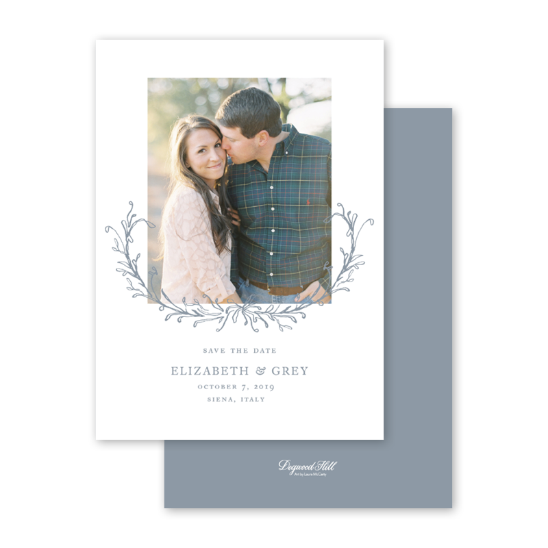 Select your order quantity from the dropdown menu below and check your total. Enter the text for your Save the Date in the “Note” box below. Click Add to Cart. Your wording does not have to match the sample product wording and can be customized for your Save the Date. You will receive a proof notification via email and text message within 3 to 5 business days.If your Save the Date includes a photo, please email a high resolution image along with your order number to weddings@dogwood-hill.com.