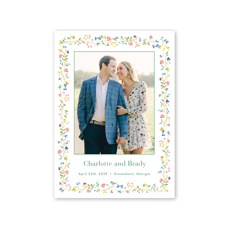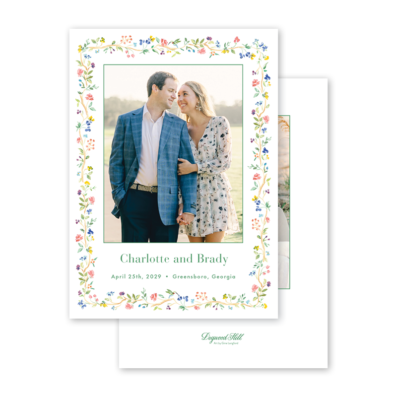 Select your order quantity from the dropdown menu below and check your total. Enter the text for your Save the Date in the “Note” box below. Click Add to Cart. Your wording does not have to match the sample product wording and can be customized for your Save the Date. You will receive a proof notification via email and text message within 3 to 5 business days.If your Save the Date includes a photo, please email a high resolution image along with your order number to weddings@dogwood-hill.com.
