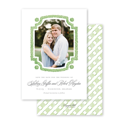 Select your order quantity from the dropdown menu below and check your total. Enter the text for your Save the Date in the “Note” box below. Click Add to Cart. Your wording does not have to match the sample product wording and can be customized for your Save the Date. You will receive a proof notification via email and text message within 3 to 5 business days.If your Save the Date includes a photo, please email a high resolution image along with your order number to weddings@dogwood-hill.com.