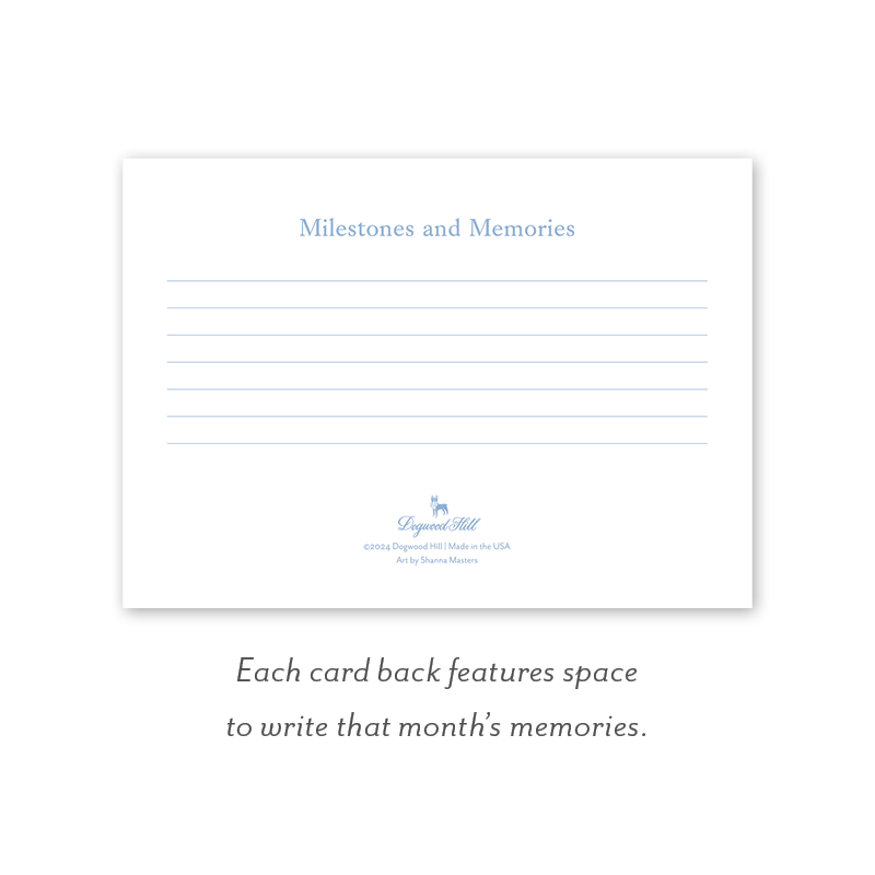 Photograph your baby's first year of life with our charming Milestone Cards! Each set includes fifteen 5x7 inch cards that are printed on 120 lb Mohawk Eggshell White paper.