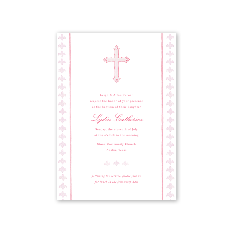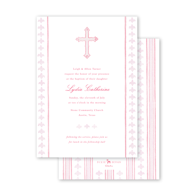 Fleur de lis Pink Cross Baptism