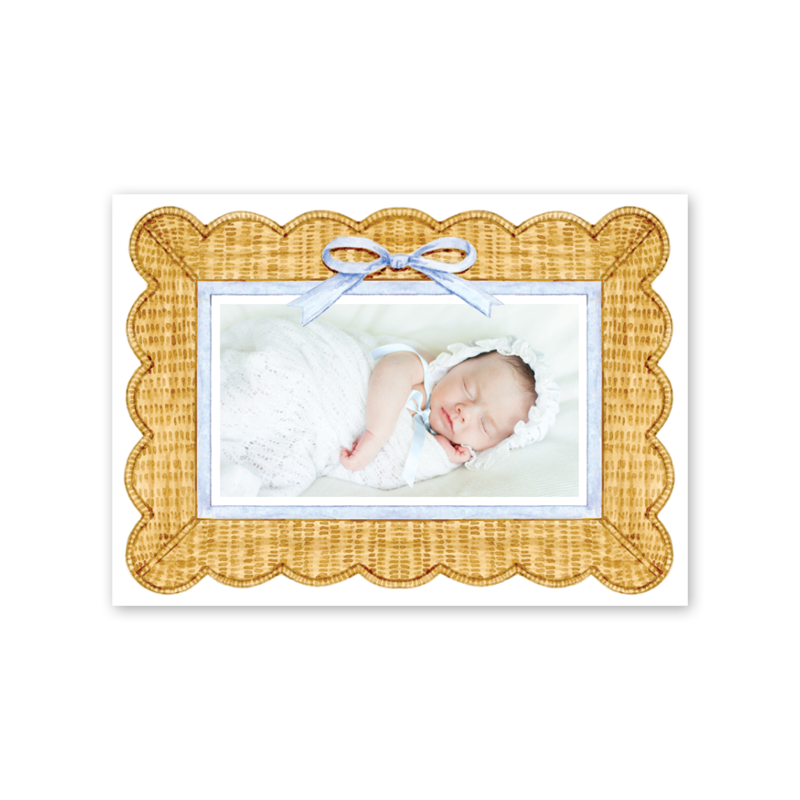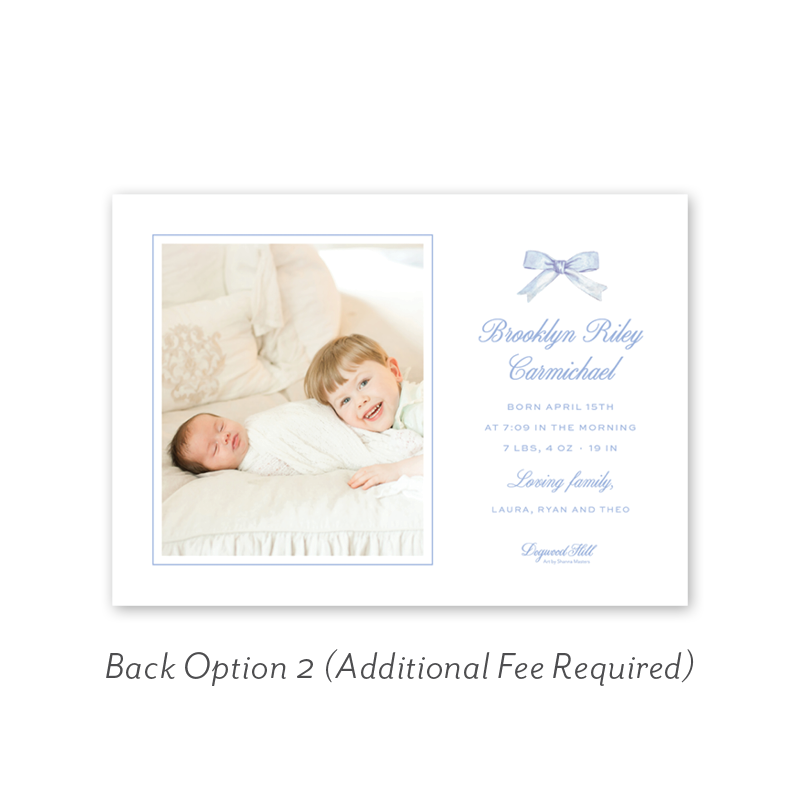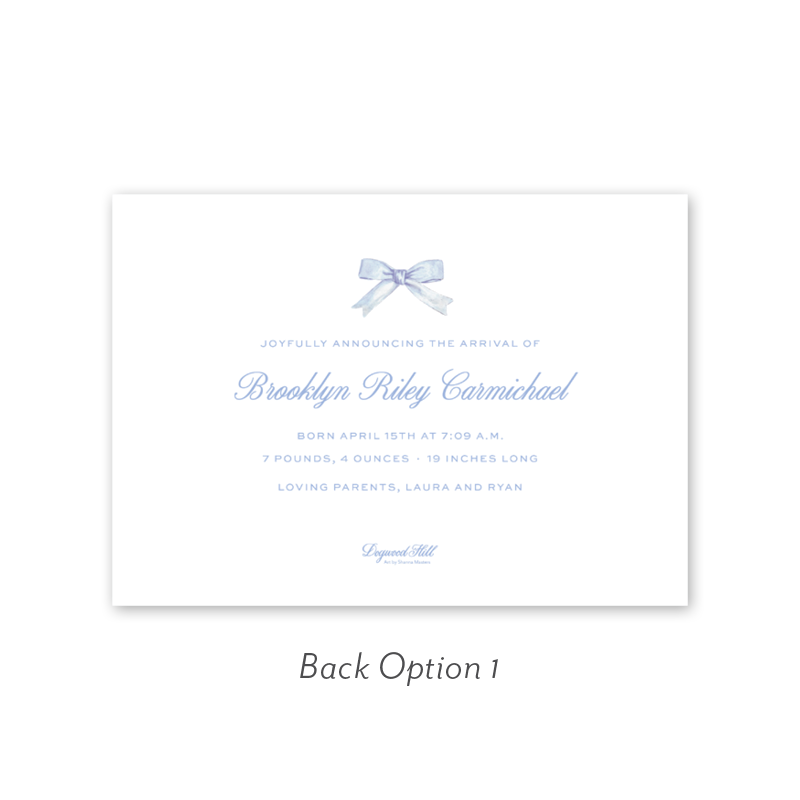 Isla Bahia Blue Bow Landscape Birth Announcement