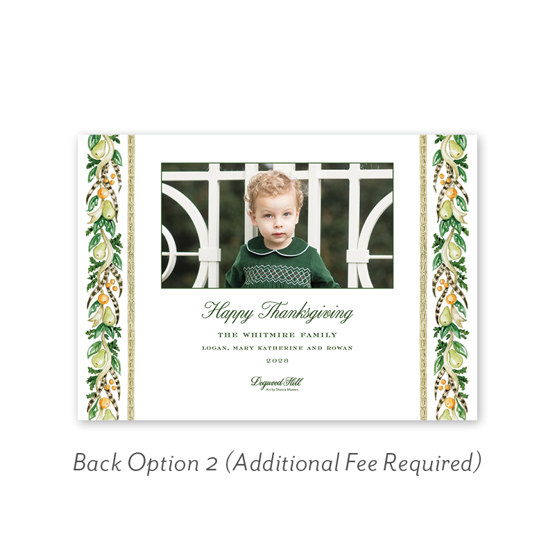 Select your order quantity from the dropdown menu below and check your total. Then click the Customize and Add to Cart button to create your card and add it to your cart.Want to add up to 4 photos on the back or inside of your card? Click here to add the fee to your cart.