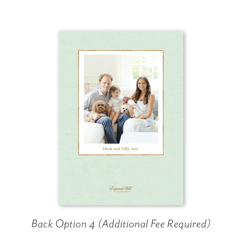 Want to add up to 4 photos on the back or inside of your card? Click here to add the fee to your cart.