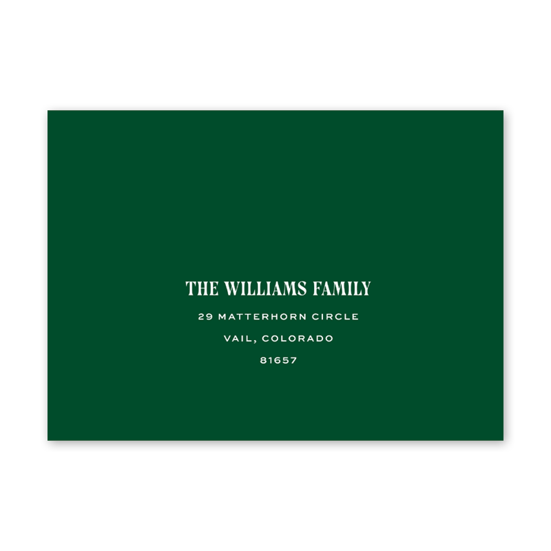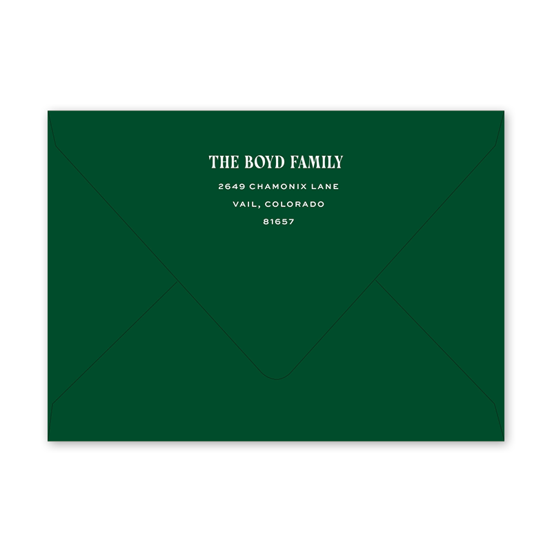 Enter your order quantity and check your total. Please enter your address EXACTLY like you want it printed on your envelope in the "Note" box below. Click Add to Cart. You will not receive a proof during the holidays (September 15 – December 31), unless your accompanying card requires a proof. If you do not include your address in the "Note" box or email it to Customer Service within 24 hours of placing your order, we will use your shipping address as the printed return address on your envelope. Enter your order quantity and check your total. Then click the Customize and Add to Cart button to enter your address and add the envelope to your cart. | /