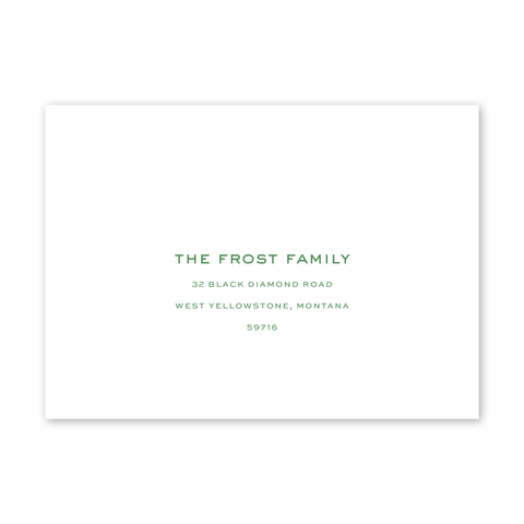 Enter your order quantity and check your total. Please enter your address EXACTLY like you want it printed on your envelope in the "Note" box below. Click Add to Cart. You will not receive a proof during the holidays (September 15 – December 31), unless your accompanying card requires a proof. If you do not include your address in the "Note" box or email it to Customer Service within 24 hours of placing your order, we will use your shipping address as the printed return address on your envelope. | /