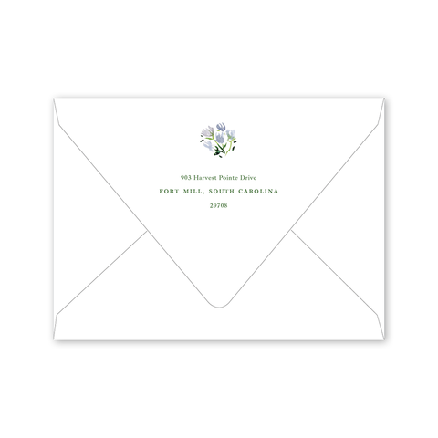 Select your order quantity from the dropbox menu below and check your total. Enter the personalization text for your notecard in the “Note” box below. Click Add to Cart. You will receive a proof notification via email and text message within 3 to 5 business days.Each card comes with one free BLANK Eggshell White envelope.