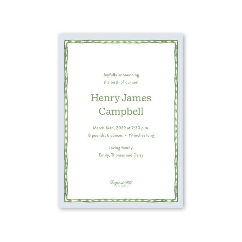Spring Bunnies Blue Photo Mount Birth Announcement