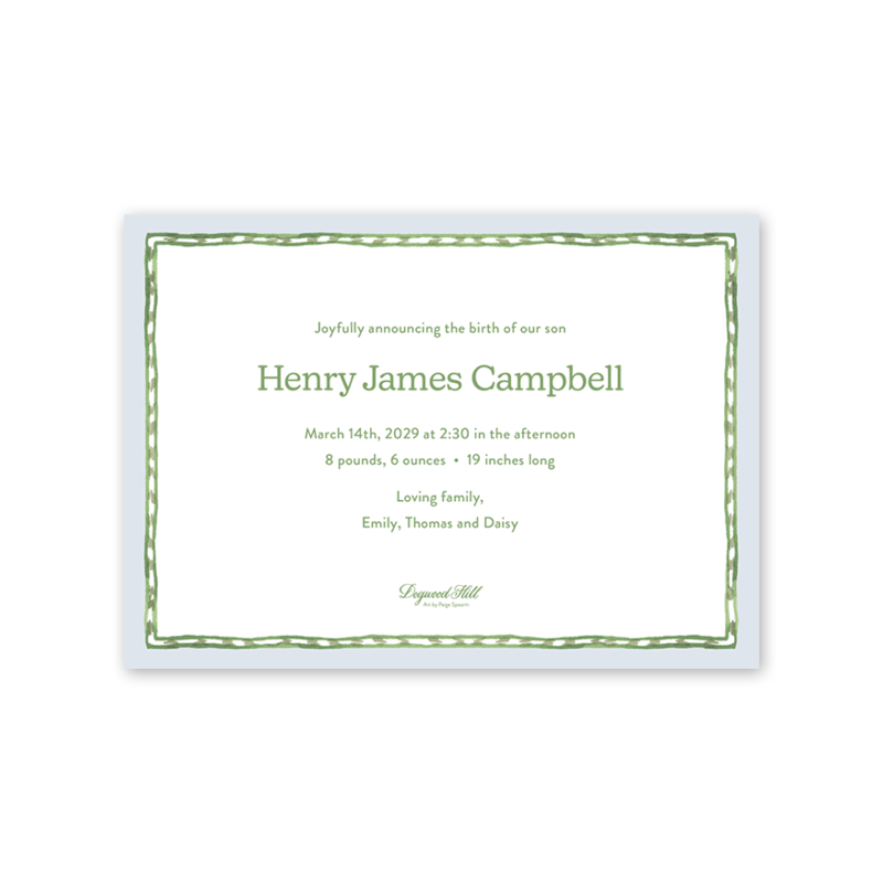 Spring Bunnies Blue Photo Mount Landscape Birth Announcement