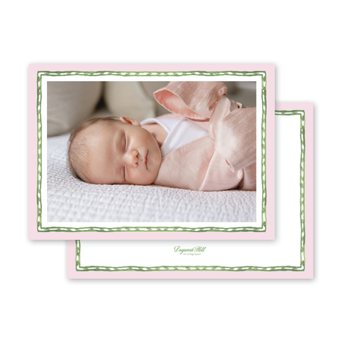 Spring Bunnies PInk Border Landscape Birth Announcement Solid Liner