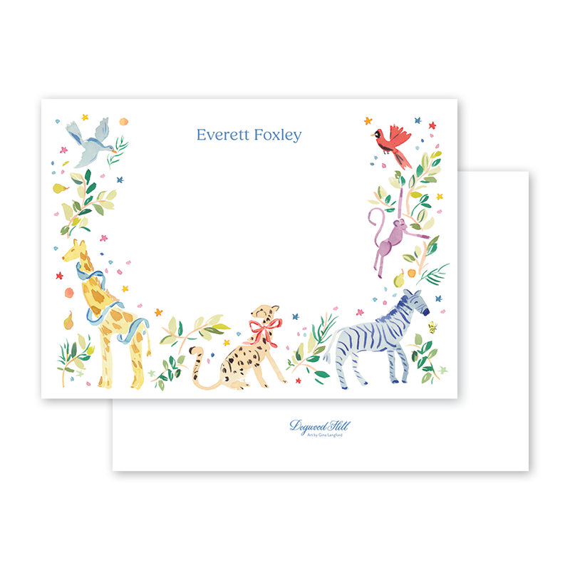 Select your order quantity from the dropbox menu below and check your total. Enter the personalization text for your notecard in the “Note” box below. Click Add to Cart. You will receive a proof notification via email and text message within 3 to 5 business days.Each card comes with one free BLANK Eggshell White envelope.