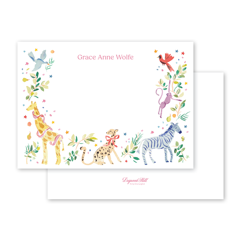 Select your order quantity from the dropbox menu below and check your total. Enter the personalization text for your notecard in the “Note” box below. Click Add to Cart. You will receive a proof notification via email and text message within 3 to 5 business days.Each card comes with one free BLANK Eggshell White envelope.
