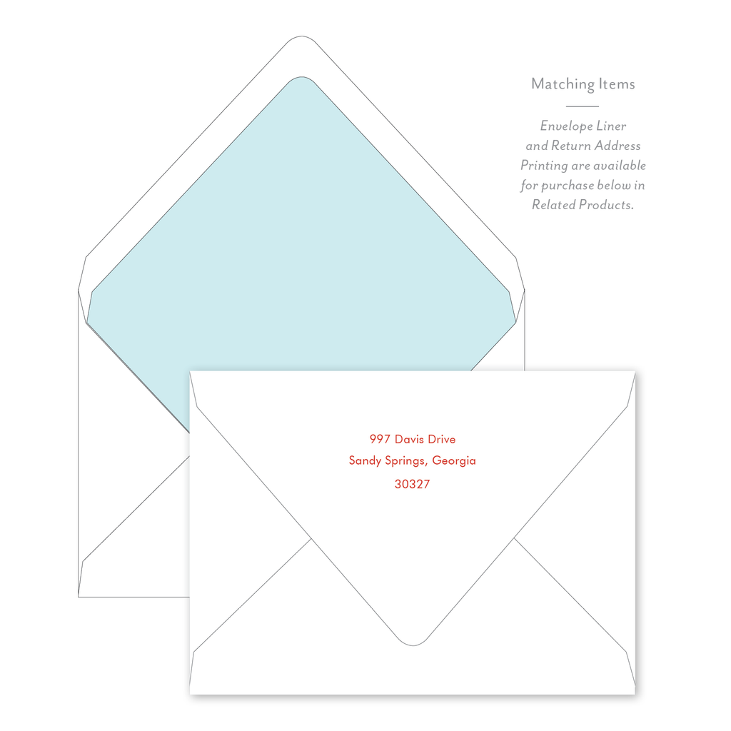 Select your order quantity from the dropbox menu below and check your total. Enter the personalization text for your notecard in the “Note” box below. Click Add to Cart. You will receive a proof notification via email and text message within 3 to 5 business days.Each card comes with one free BLANK Eggshell White envelope.