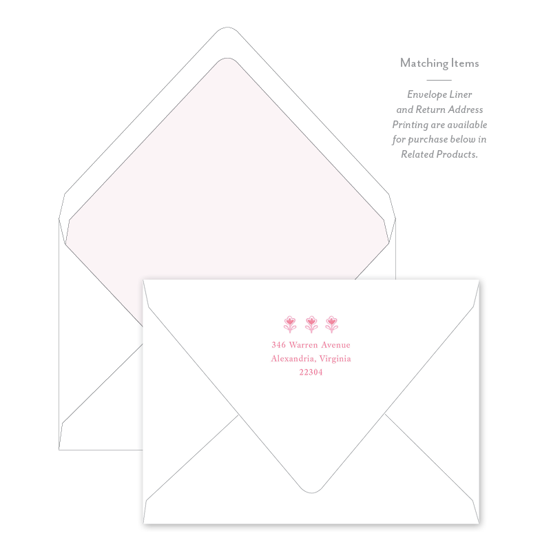 Select your order quantity from the dropbox menu below and check your total. Enter the personalization text for your notecard in the “Note” box below. Click Add to Cart. You will receive a proof notification via email and text message within 3 to 5 business days.Each card comes with one free BLANK Eggshell White envelope.