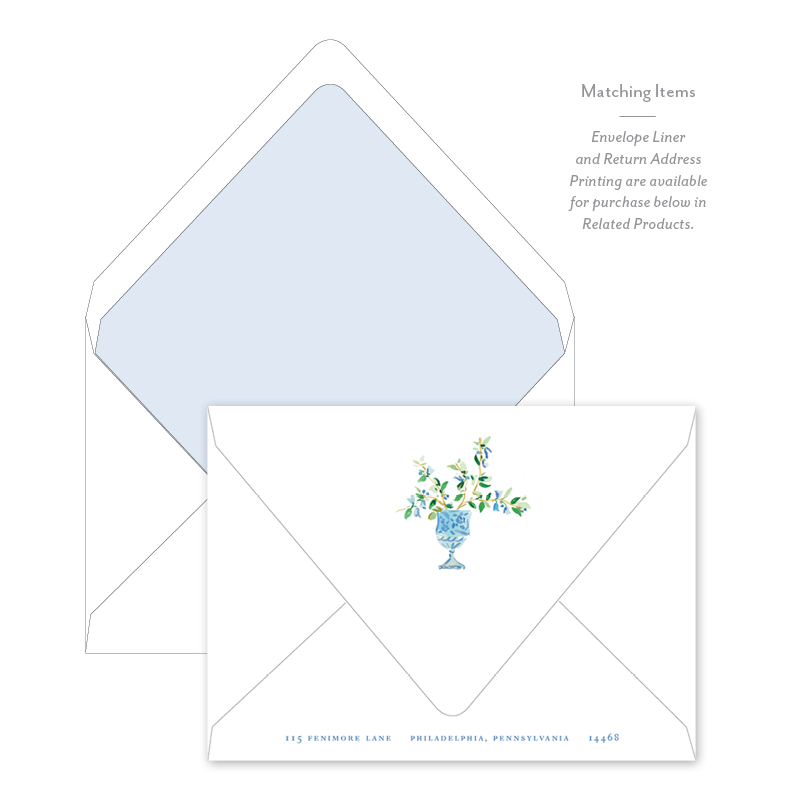 Select your order quantity from the dropbox menu below and check your total. Enter the personalization text for your notecard in the “Note” box below. Click Add to Cart. You will receive a proof notification via email and text message within 3 to 5 business days.Each card comes with one free BLANK Eggshell White envelope.