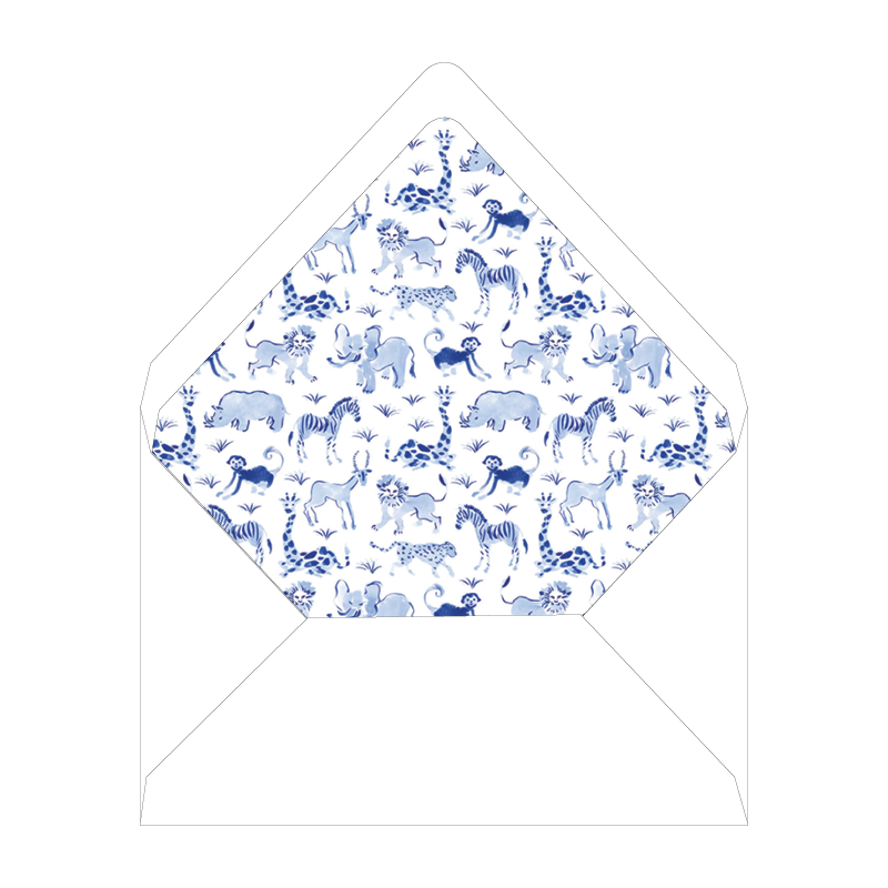 Blue Safari Animals Folded Notecard Liner