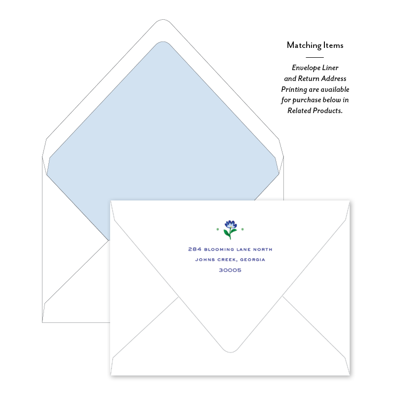 Select your order quantity from the dropbox menu below and check your total. Enter the personalization text for your notecard in the “Note” box below. Click Add to Cart. You will receive a proof notification via email and text message within 3 to 5 business days.Each card comes with one free BLANK Eggshell White envelope.