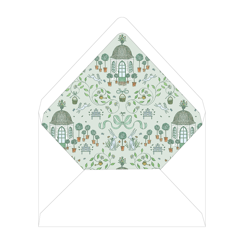 Bunny's Garden Hare and Topiary Folded Notecard Liner