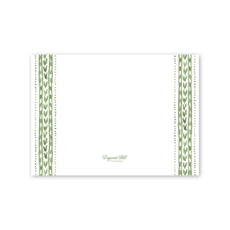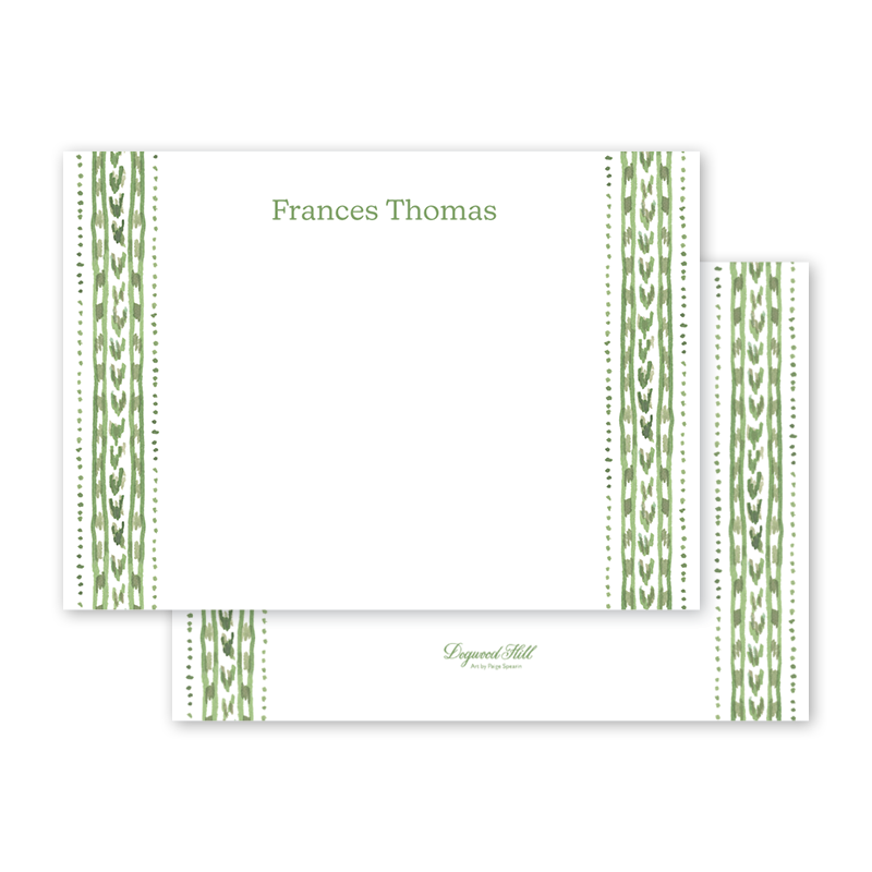 Select your order quantity from the dropbox menu below and check your total. Enter the personalization text for your notecard in the “Note” box below. Click Add to Cart. You will receive a proof notification via email and text message within 3 to 5 business days.Each card comes with one free BLANK Eggshell White envelope.