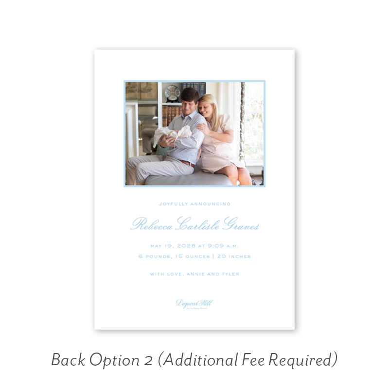 Select your order quantity from the dropdown menu below and check your total. Then click the Customize and Add to Cart button to create your card and add it to your cart.Want to add up to 4 photos on the back or inside of your card? Click here to add the fee to your cart.