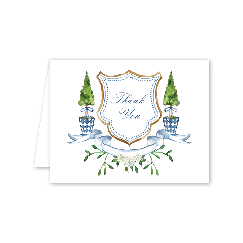 Blue Topiary Crest Thank You Card