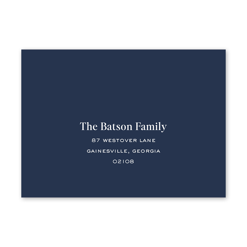 Enter your order quantity and check your total. Please enter your address EXACTLY like you want it printed on your envelope in the "Note" box below. Click Add to Cart. You will not receive a proof during the holidays (September 15 – December 31), unless your accompanying card requires a proof. If you do not include your address in the "Note" box or email it to Customer Service within 24 hours of placing your order, we will use your shipping address as the printed return address on your envelope. Enter your order quantity and check your total. Then click the Customize and Add to Cart button to enter your address and add the envelope to your cart. | /