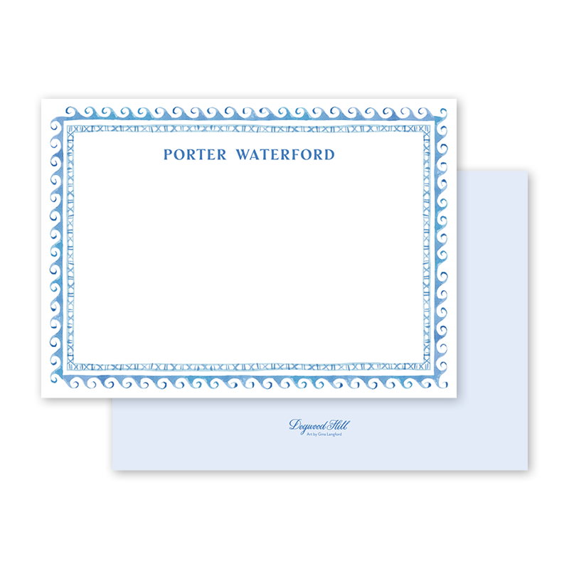25 personalized notecards sized 4.5 x 6.25 inches on 120 lb Mohawk Eggshell White Paper