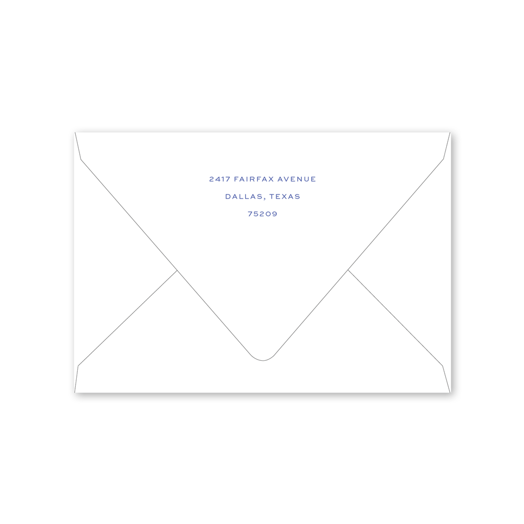 Enter your order quantity and check your total. Please enter your address EXACTLY like you want it printed on your envelope in the "Note" box below. Click Add to Cart. You will not receive a proof during the holidays (September 15 – December 31), unless your accompanying card requires a proof. If you do not include your address in the "Note" box or email it to Customer Service within 24 hours of placing your order, we will use your shipping address as the printed return address on your envelope.