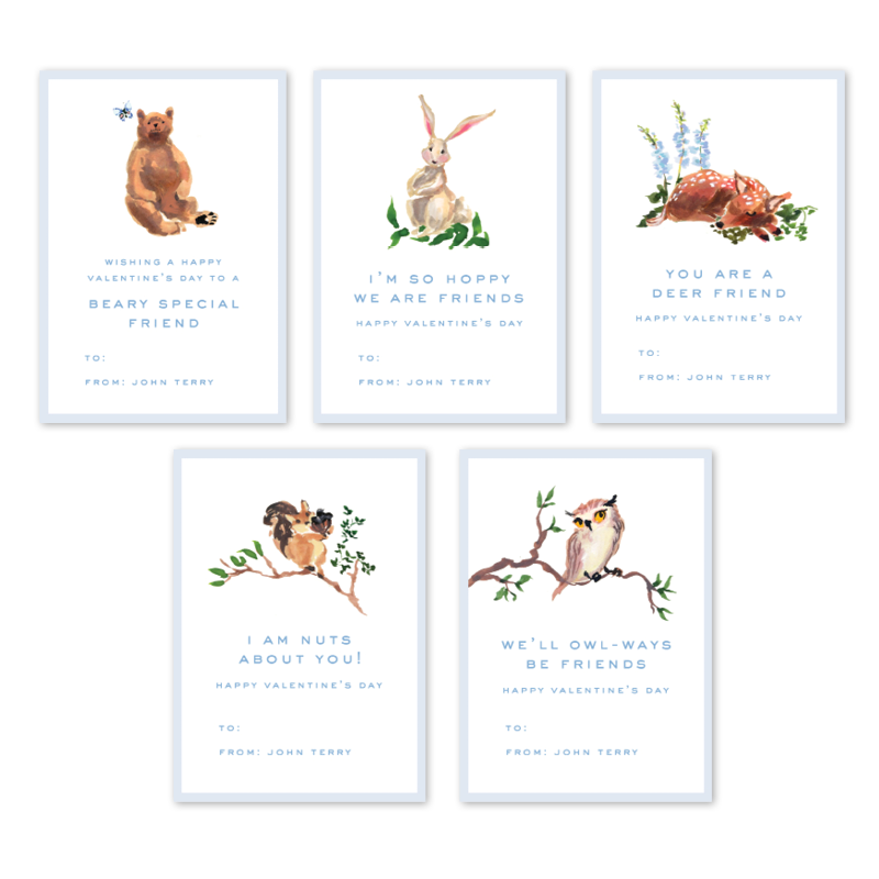 Woodland Animals Blue Valentine Multi Set