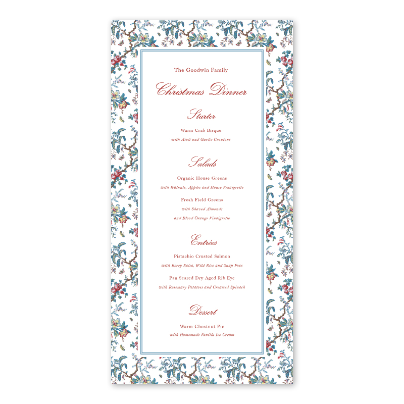 Butterfly Chintz Holiday Menu