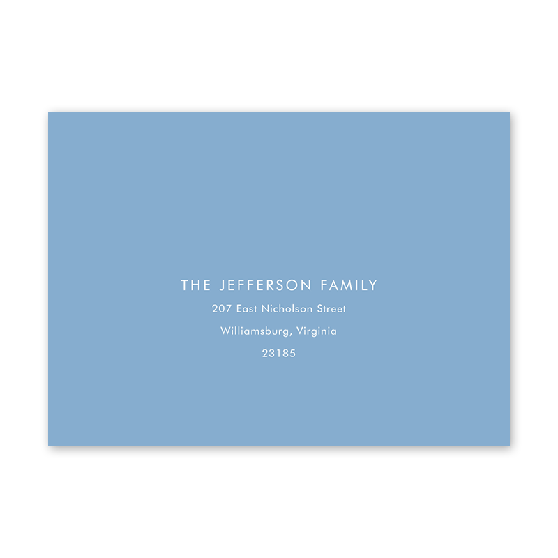 Enter your order quantity and check your total. Please enter your address EXACTLY like you want it printed on your envelope in the "Note" box below. Click Add to Cart. You will not receive a proof during the holidays (September 15 – December 31), unless your accompanying card requires a proof. If you do not include your address in the "Note" box or email it to Customer Service within 24 hours of placing your order, we will use your shipping address as the printed return address on your envelope. Enter your order quantity and check your total. Then click the Customize and Add to Cart button to enter your address and add the envelope to your cart. | /
