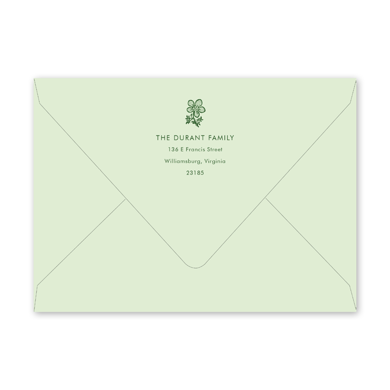 Enter your order quantity and check your total. Please enter your address EXACTLY like you want it printed on your envelope in the "Note" box below. Click Add to Cart. You will not receive a proof during the holidays (September 15 – December 31), unless your accompanying card requires a proof. If you do not include your address in the "Note" box or email it to Customer Service within 24 hours of placing your order, we will use your shipping address as the printed return address on your envelope. Enter your order quantity and check your total. Then click the Customize and Add to Cart button to enter your address and add the envelope to your cart. | /