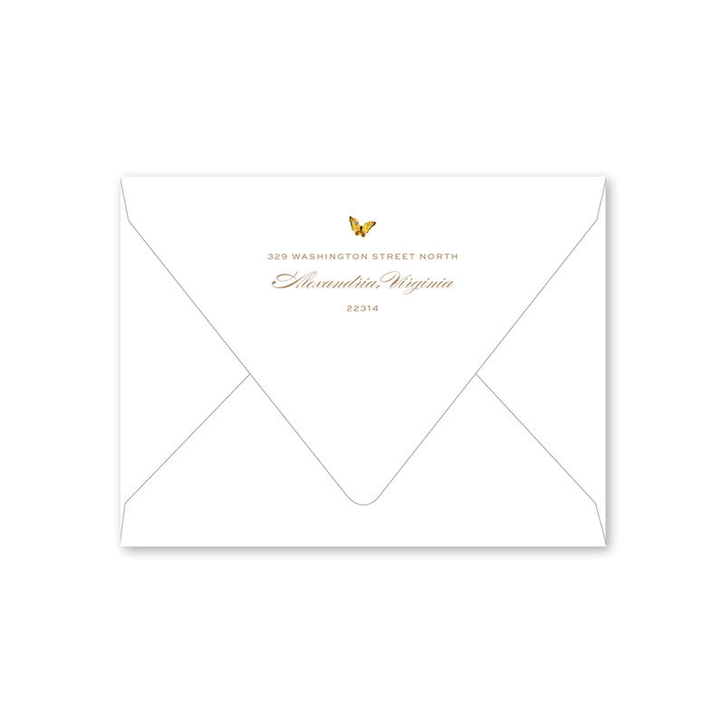 Enter your order quantity and check your total. Please enter your address EXACTLY like you want it printed on your envelope in the "Note" box below. Click Add to Cart. You will not receive a proof during the holidays (September 15 – December 31), unless your accompanying card requires a proof. If you do not include your address in the "Note" box or email it to Customer Service within 24 hours of placing your order, we will use your shipping address as the printed return address on your envelope.