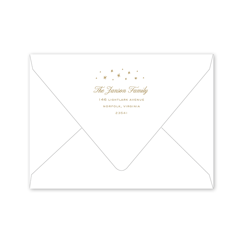 Enter your order quantity and check your total. Please enter your address EXACTLY like you want it printed on your envelope in the "Note" box below. Click Add to Cart. You will not receive a proof during the holidays (September 15 – December 31), unless your accompanying card requires a proof. If you do not include your address in the "Note" box or email it to Customer Service within 24 hours of placing your order, we will use your shipping address as the printed return address on your envelope.