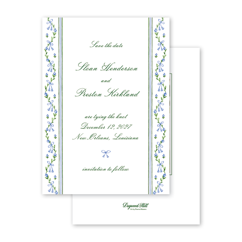 Select your order quantity from the dropdown menu below and check your total. Enter the text for your Save the Date in the “Note” box below. Click Add to Cart. Your wording does not have to match the sample product wording and can be customized for your Save the Date. You will receive a proof notification via email and text message within 3 to 5 business days.If your Save the Date includes a photo, please email a high resolution image along with your order number to weddings@dogwood-hill.com.
