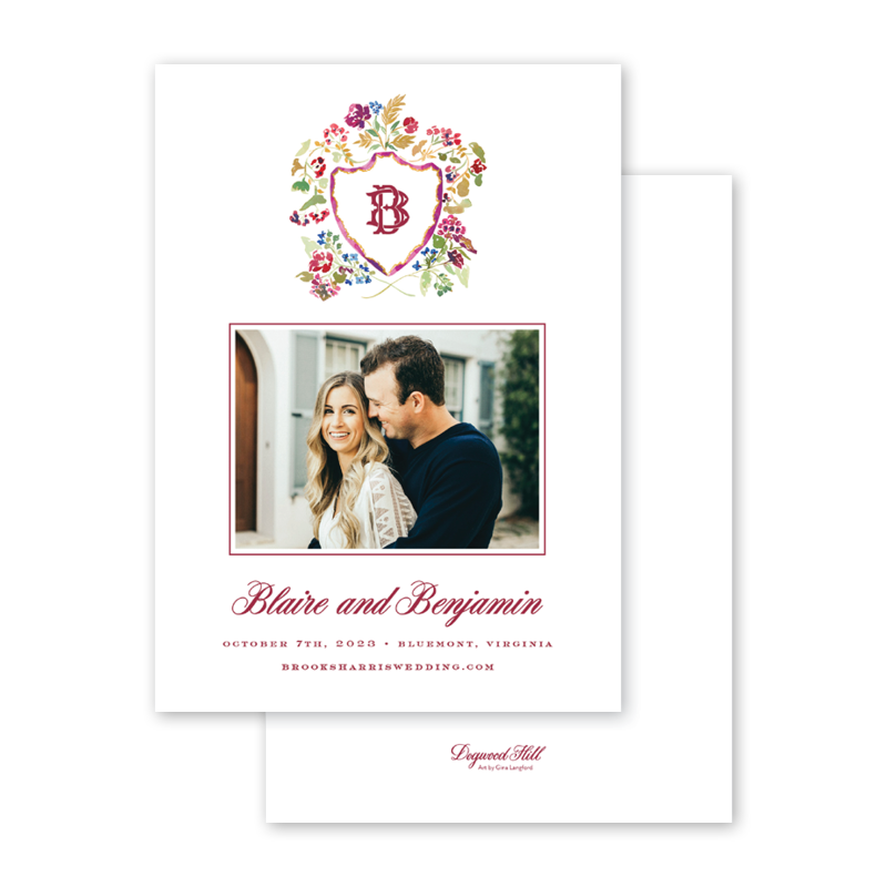 Select your order quantity from the dropdown menu below and check your total. Enter the text for your Save the Date in the “Note” box below. Click Add to Cart. Your wording does not have to match the sample product wording and can be customized for your Save the Date. You will receive a proof notification via email and text message within 3 to 5 business days.If your Save the Date includes a photo, please email a high resolution image along with your order number to weddings@dogwood-hill.com.