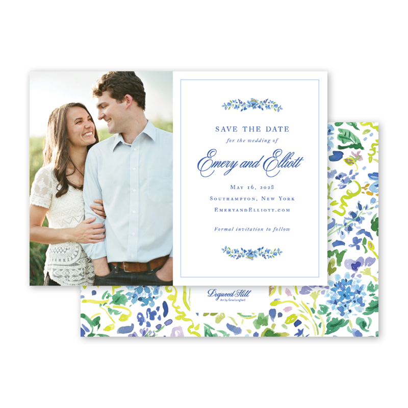 If your Save the Date includes a photo, please email a high resolution image along with your order number to weddings@dogwood-hill.com.