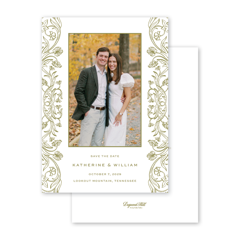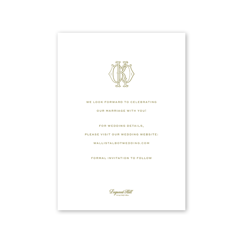 Select your order quantity from the dropdown menu below and check your total. Enter the text for your Save the Date in the “Note” box below. Click Add to Cart. Your wording does not have to match the sample product wording and can be customized for your Save the Date. You will receive a proof notification via email and text message within 3 to 5 business days.If your Save the Date includes a photo, please email a high resolution image along with your order number to weddings@dogwood-hill.com.
