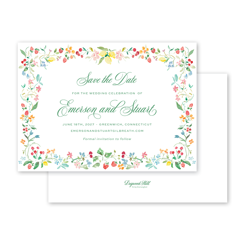 If your Save the Date includes a photo, please email a high resolution image along with your order number to weddings@dogwood-hill.com.