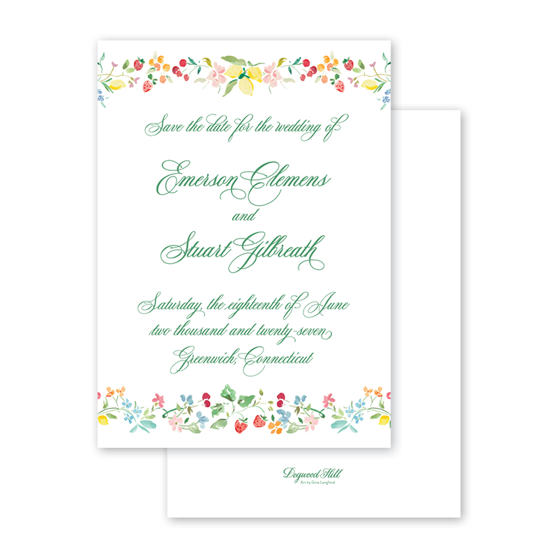 Select your order quantity from the dropdown menu below and check your total. Enter the text for your Save the Date in the “Note” box below. Click Add to Cart. Your wording does not have to match the sample product wording and can be customized for your Save the Date. You will receive a proof notification via email and text message within 3 to 5 business days.If your Save the Date includes a photo, please email a high resolution image along with your order number to weddings@dogwood-hill.com.